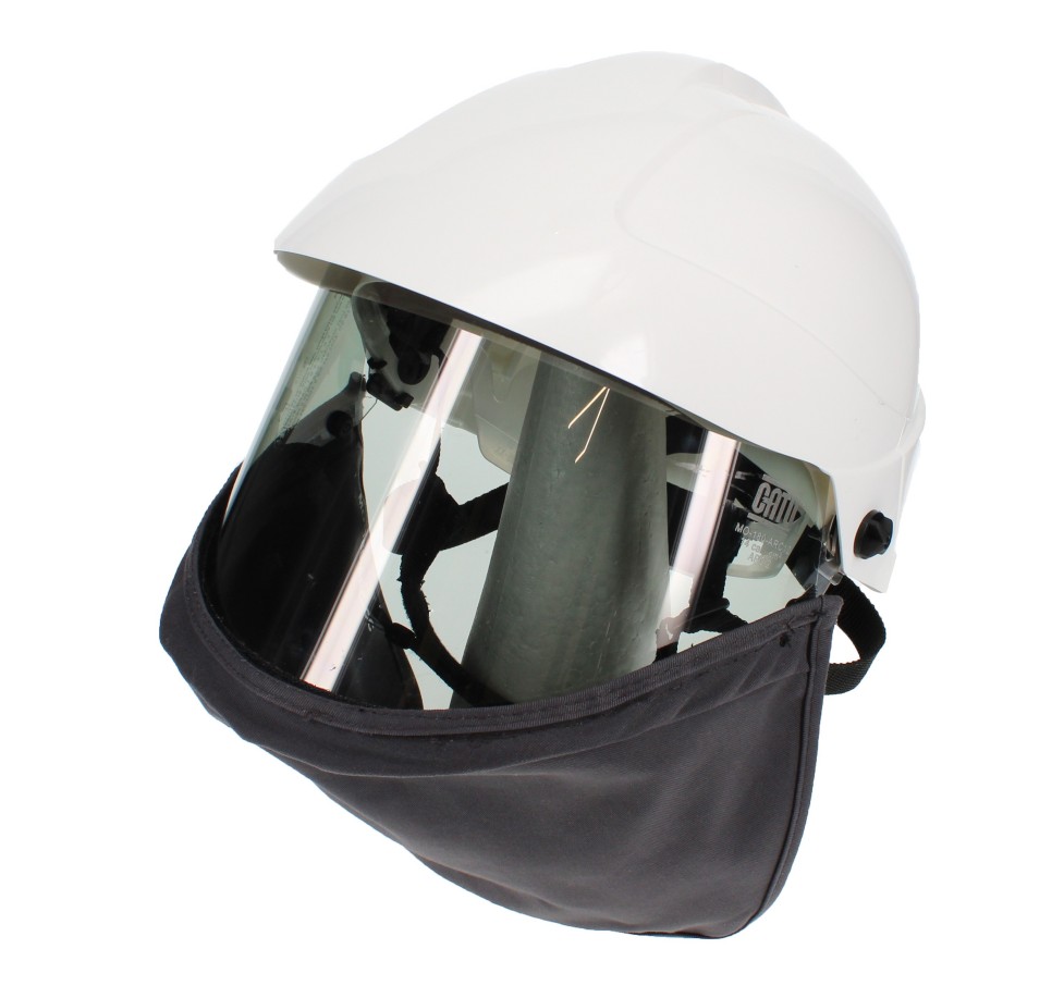 Arc Flash Helmet with Integrated Face Shield and Neck Protection